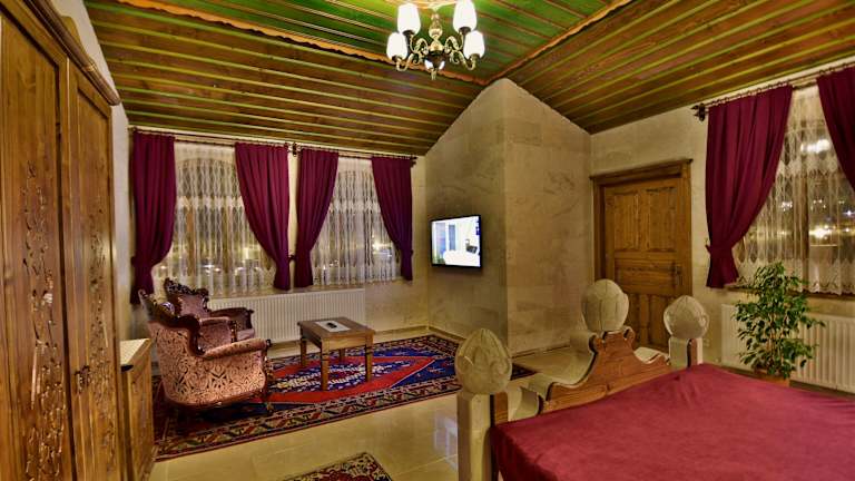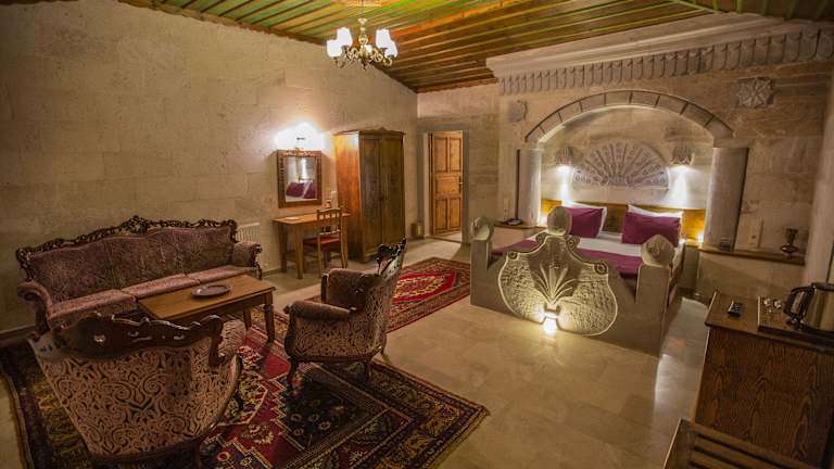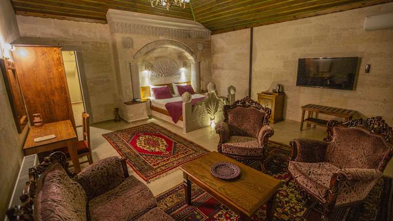 Die 22 Zimmer des Stone House Cave Hotels sind traditionell eingerichtet und bieten modernen Komfort. Die Zimmer verfügen über moderne Badezimmer und Einrichtungen, um Ihren Aufenthalt so angenehm wie möglich zu gestalten.