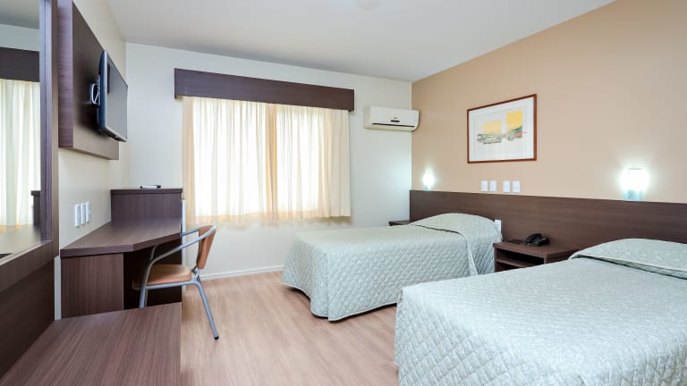 Die Zimmer im Hotel Suárez São Leopoldo sind komfortabel und gut ausgestattet. Sie verfügen über Annehmlichkeiten wie Klimaanlage, Sat-TV, Telefon, Schreibtisch und Minibar. Jedes Zimmer hat ein eigenes Badezimmer mit kostenlosen Pflegeprodukten.