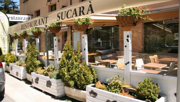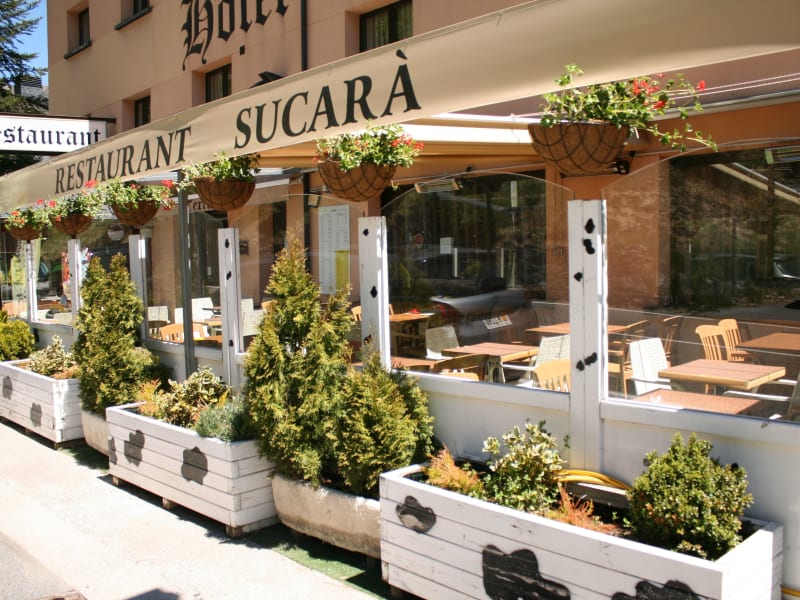 Im Restaurant Sucarà können die Gäste regionale Gerichte genießen und dabei den Blick auf die umliegende Landschaft bewundern. Das Restaurant bietet auch eine Terrasse, eine Snackbar und eine Lounge, in denen die Gäste entspannen und sich verwöhnen lassen können. Das Hotel bietet außerdem verschiedene Verpflegungsangebote wie Frühstück, Halbpension und Vollpension.