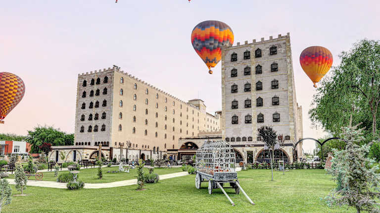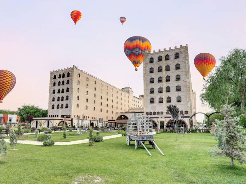 Das Suhan Cappadocia Hotel & Spa in Avanos bietet seinen Gästen eine entspannte Atmosphäre und eine Vielzahl von Annehmlichkeiten. Mit Innen- und Außenpools, Massagen und kostenfreiem WLAN ist für jeden etwas dabei. Die modern eingerichteten Zimmer zeichnen sich durch warme Farbtöne und einen Sitzbereich aus. Das Hotel bietet auch ein großes Buffetrestaurant mit türkischen und internationalen Spezialitäten sowie eine Lobbybar mit Kamin. Parkplätze stehen kostenfrei zur Verfügung und ein Shuttleservice zum Flughafen Nevşehir ist verfügbar.
