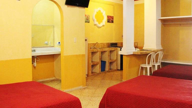 Das Hotel Suites Elia Noemi bietet eine günstige Lage im Stadtzentrum von Mérida und ist somit ideal für einen Aufenthalt in der Stadt. Die Unterkunft verfügt über einen Außenpool und Tischfußball, um Ihren Aufenthalt noch angenehmer zu gestalten. Die klimatisierten Zimmer sind mit einer Küchenzeile ausgestattet und bieten regionalen TV-Kanäle. Genießen Sie traditionelle Gerichte aus Mérida und mexikanische Küche im nahe gelegenen Gourmetrestaurant Almedro oder besuchen Sie eines der beliebten Cafés in der Nähe. In der Umgebung finden Sie auch Sehenswürdigkeiten wie das Museum Mundo Maya und den Hauptplatz von Mérida.