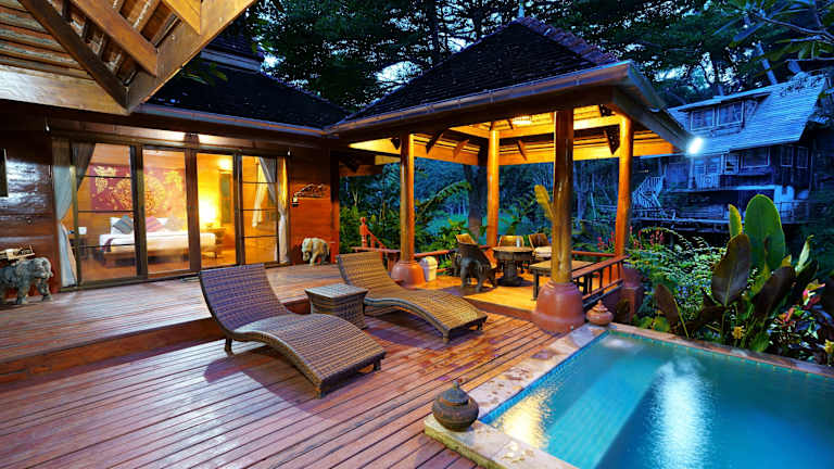 Das Sukantara Cascade Resort and Spa liegt an der Maerim-Samoeng Straße in einer grünen Berglandschaft in Chiang Mai. Die Gegend bietet eine malerische Umgebung mit einem Wasserfall, der sich von den Bergen herab ergießt. In der Nähe des Resorts finden Sie verschiedene touristische Attraktionen wie ein Elefanten Camp, ein Affenzentrum, eine Orchideenfarm und einen botanischen Garten. Der internationale Flughafen von Chiang Mai ist etwa 45 Minuten mit dem Auto entfernt.