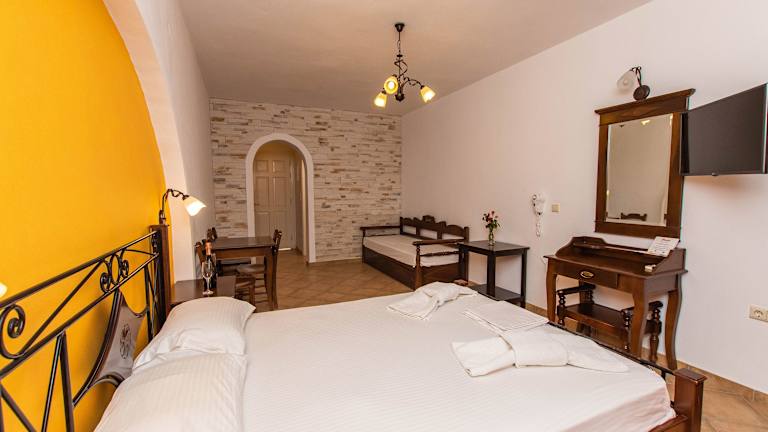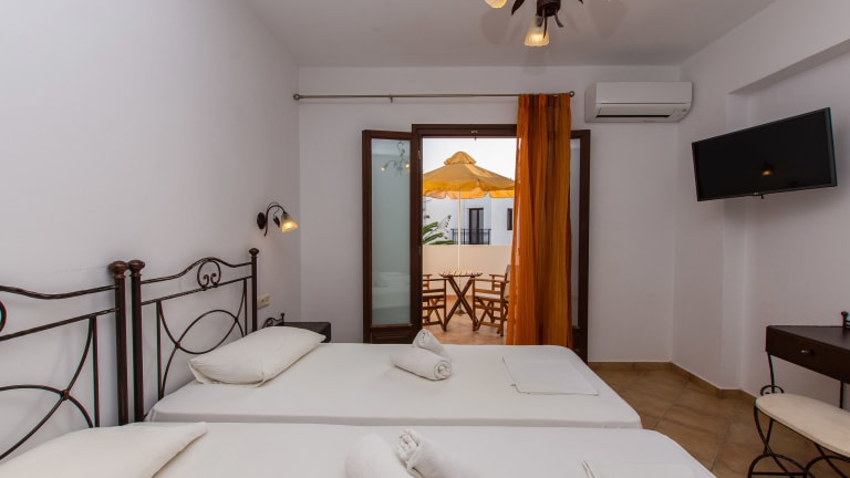 Das Summer Dream II befindet sich in Agia Anna, nur 25 m vom Sandstrand entfernt. In der unmittelbaren Umgebung finden Sie auch eine Vielzahl von Restaurants und Cafés, in denen Sie lokale Spezialitäten genießen können. Der Hafen und die lebhafte Stadt Naxos liegen etwa 5 km entfernt und können leicht erreicht werden. Der internationale Flughafen von Naxos ist nur 2 km entfernt, was die Anreise zum Hotel sehr bequem macht. Ein Supermarkt ist ebenfalls nur 30 m entfernt, so dass Sie alle notwendigen Einkäufe bequem erledigen können.