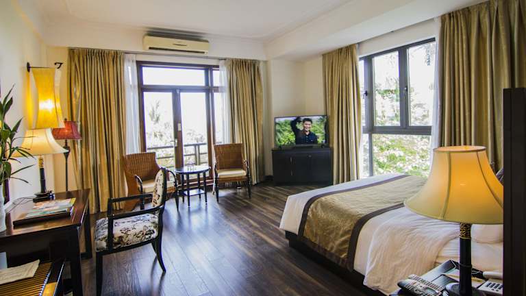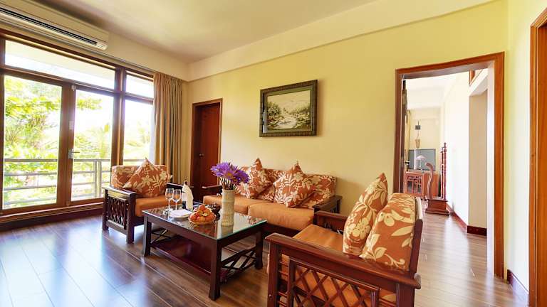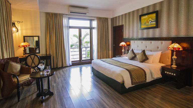 Die gut ausgestatteten Unterkünfte im Sun Spa Resort & Villa befinden sich inmitten von angelegten tropischen Gärten und bieten einen erholsamen Rückzugsort. Die Zimmer sind geschmackvoll eingerichtet und verfügen über einen eigenen Balkon, einen Sitzbereich und einen Schreibtisch. Zur weiteren Ausstattung gehören ein Flachbild-Kabel-TV, eine Minibar und ein Wasserkocher. Einige der Unterkünfte bieten auch einen Whirlpool und einen Blick auf den Garten. Jedes Zimmer verfügt über ein eigenes Bad mit einer Badewanne, einem Haartrockner und kostenfreien Pflegeprodukten.