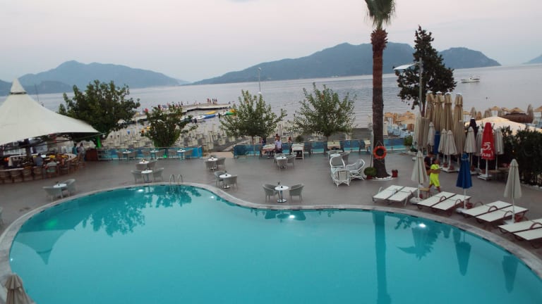 Das Hotel Sunrise befindet sich in einer ruhigen Lage, etwa 3 km vom Zentrum von Marmaris entfernt. Der Sandstrand ist nur wenige Meter entfernt und lädt zum Sonnenbaden und Schwimmen ein. Die Umgebung bietet viele Möglichkeiten für Aktivitäten wie Wassersport und Bootsausflüge. Das Stadtzentrum von Marmaris mit seinen Geschäften, Restaurants und Unterhaltungsmöglichkeiten erreichen Sie nach ca. 4 km.