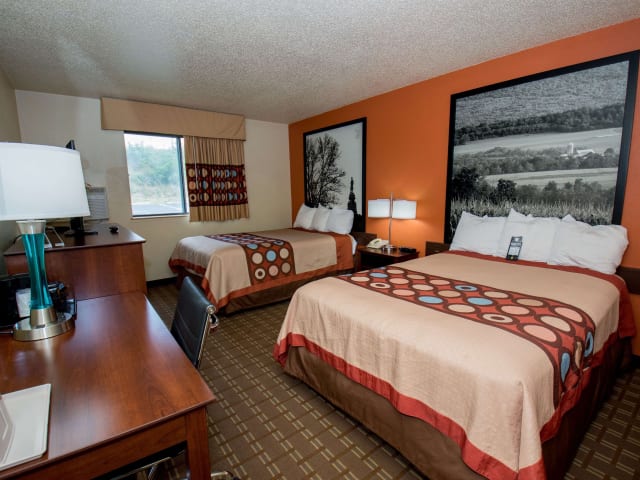 Die Zimmer im Super 8 Altoona sind schlicht eingerichtet und verfügen über grundlegende Annehmlichkeiten wie Kabel-TV, einen kleinen Kühlschrank, eine Mikrowelle und Kaffeezubehör. Einige Zimmer bieten auch eine Klimaanlage gegen Gebühr. Es gibt sowohl Nichtraucher- als auch Raucherzimmer, und rollstuhlgerechte Zimmer mit barrierefreiem Badezimmer sind ebenfalls verfügbar.