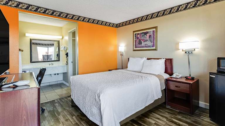 Die Zimmer im Knights Inn Madera sind komfortabel eingerichtet und mit allen notwendigen Annehmlichkeiten ausgestattet. Tee- und Kaffeezubehör stehen zur Verfügung, damit Sie sich jederzeit eine Tasse zubereiten können. Das Kabel-TV mit HBO sorgt für Unterhaltung und die Mikrowelle und der Kühlschrank ermöglichen es Ihnen, Snacks und Getränke im Zimmer aufzubewahren.
