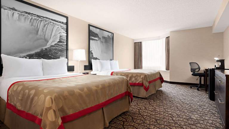 Die Zimmer im Ramada Niagara Falls Near the Falls sind komfortabel und modern eingerichtet. Jedes Zimmer verfügt über einen Flachbild-TV mit Kabelkanälen, kostenloses WLAN und kostenlose Ortsgespräche. Die individuell regulierbare Heizung und Klimaanlage sorgen dafür, dass Sie sich bei jedem Wetter wohl fühlen. Die Badezimmer sind ensuite und mit kostenlosen Pflegeprodukten sowie einem Haartrockner ausgestattet. Für zusätzlichen Komfort stehen Ihnen ein Zimmerservice sowie Kaffee- und Teekocher zur Verfügung.