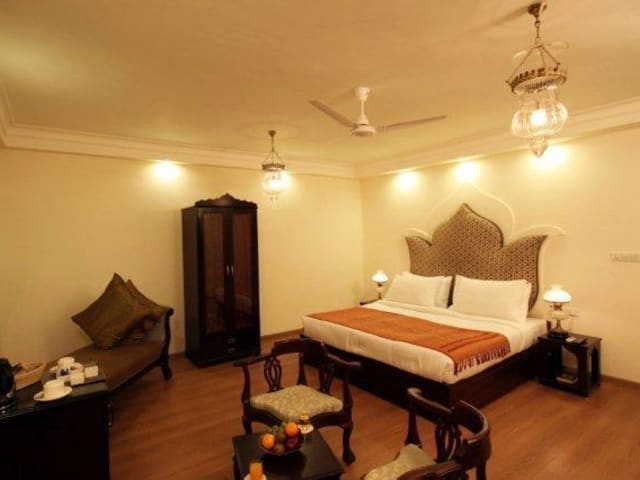 Das Suryauday Haveli liegt in Varanasi, nur 15 Gehminuten vom berühmten Tempel Kashi Vishwanath entfernt. Der Flughafen Babatpur ist nach einer 15-minütigen Bootsfahrt und einer 1-stündigen Autofahrt erreichbar. Der Busbahnhof und der Bahnhof Varanasi Junction sind jeweils 7 km entfernt. Die Lage des Hotels bietet Ihnen die Möglichkeit, die heilige Stadt Benaras und ihre Sehenswürdigkeiten bequem zu erkunden.