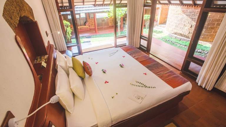 Die Zimmer im SwaSwara Wellness Retreat sind komfortabel und stilvoll eingerichtet und bieten einen herrlichen Blick auf den Garten. Jedes Zimmer ist mit modernen Annehmlichkeiten wie einem eigenen Badezimmer und kostenfreiem WLAN ausgestattet. Hier können Sie sich zurückziehen und die ruhige Atmosphäre des Hotels genießen.