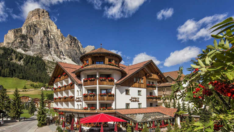 Das Hotel Tablè liegt im Zentrum von Corvara in Badia und ist nur 400 m von der Seilbahn Boè - Col Alto entfernt. Die Lage ermöglicht es Ihnen, die umliegenden Skipisten und Wanderwege bequem zu erreichen. Die Stadt Brixen ist weniger als 40 Autominuten entfernt.