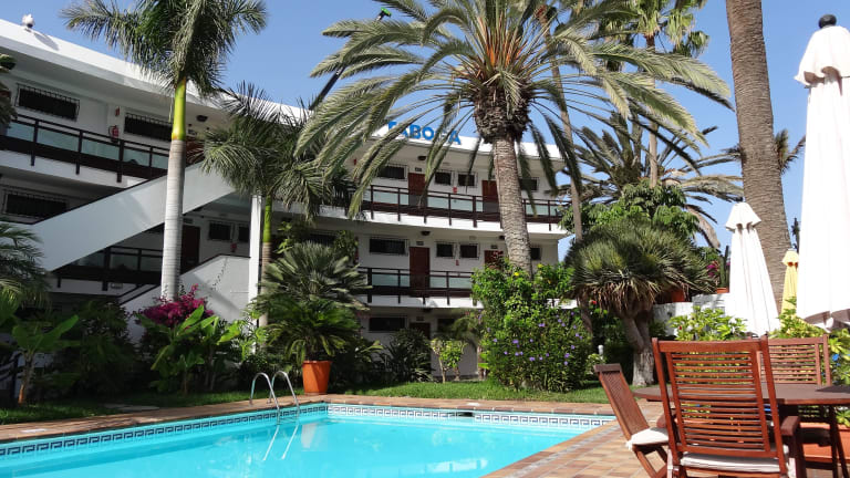 Im Hotel Taboga - Adults Only können Sie sich im Swimmingpool abkühlen und im hübschen Garten entspannen. Alternativ können Sie die nahegelegenen Geschäfte erkunden und durch die Straßen von Playa del Inglés flanieren. Die Umgebung bietet auch verschiedene Freizeitaktivitäten wie Wassersport, Wandern und Golfen.
