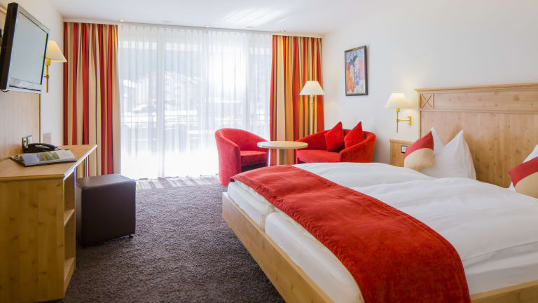 Das Hotel Täscherhof bietet freundliche und komfortable Zimmer, die im traditionellen Schweizer Stil eingerichtet sind. Jedes Zimmer verfügt über moderne Annehmlichkeiten wie Klimaanlage, Heizung, Safe, WLAN und Fernseher. Einige Zimmer verfügen auch über einen Balkon oder eine Terrasse, von denen aus Sie die schöne Umgebung genießen können. Das Badezimmer ist mit einer Dusche oder Badewanne, einem Haartrockner und Bademänteln ausgestattet.