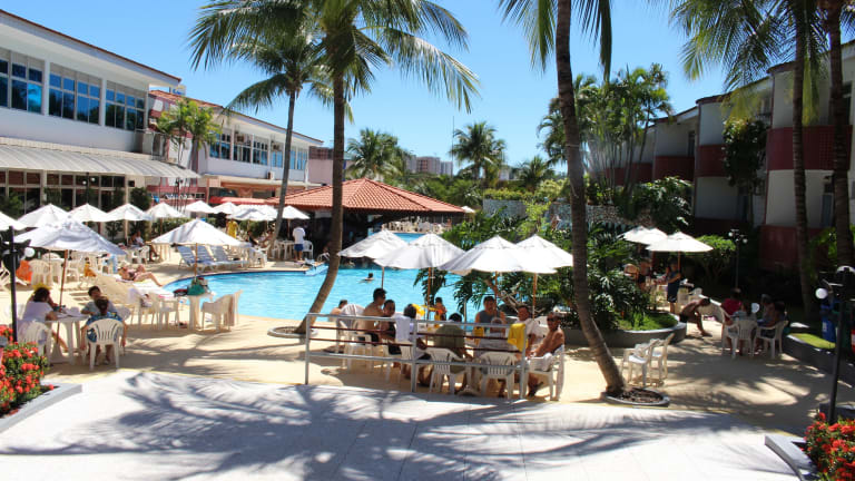 Das Hotel Taiyo in Caldas Novas bietet eine ideale Lage, nur wenige Gehminuten von den Einkaufszentren Caldas Novas und Shopping Tropical entfernt. Mit seinem Wasserpark, dem kostenlosen WLAN, dem Restaurant und den Sportplätzen ist es ein großartiger Ort für einen entspannten Aufenthalt. Die klimatisierten Zimmer mit Balkon bieten Komfort und die Möglichkeit, die Umgebung zu genießen. Das Frühstücksbuffet mit einer Auswahl an frischen Speisen und das Restaurant mit regionalen und japanischen Spezialitäten sorgen für kulinarische Höhepunkte. Das Hotel bietet auch ein Fitnesscenter, Tennisplätze und einen Spielplatz sowie ein Animationsteam und eine rund um die Uhr geöffnete Rezeption. Die Bushaltestelle und verschiedene Wasserparks sind leicht erreichbar.