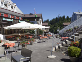 Wir bieten Zimmer mit Dusche/WC, TV und Radio und einfache Zimmer mit fliessend Wasser und Dusche/WC auf der Etage. À la carte Restaurant mit ca. 120 Sitzplätzen und ein Saal mit ca. 60 Sitzplätzen. Halbpensionmenu im Angebot. Zimmerpreise inkl. Frühstück. Im Sommer eine grosse Gartenwirtschaft.