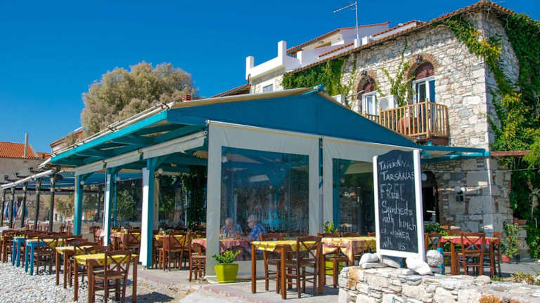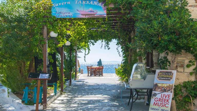 Das Hotel Tarsanas verfügt über ein traditionelles Restaurant, in dem Ihnen das Frühstück direkt am Meer serviert wird. Hier können Sie auch mediterrane und regionale Gerichte zum Mittag- und Abendessen genießen. Die Bar lädt zu einem entspannten Drink oder einem lokalen Spirituosen ein. In der unmittelbaren Umgebung des Hotels finden Sie auch Fisch-Tavernen und Cafés direkt am Meer, in denen Sie lokale Spezialitäten probieren können.