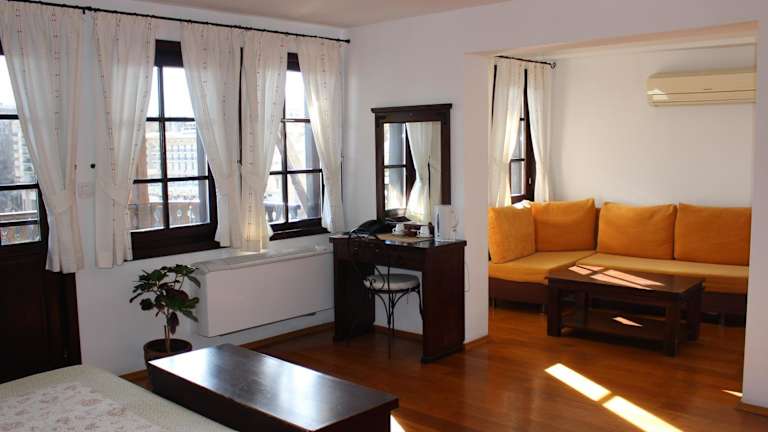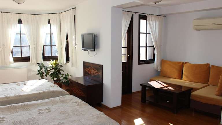 Das Gurko Hotel befindet sich in der Altstadt von Veliko Tarnovo. Der Busbahnhof ist nur 1 km entfernt und die Festung Tsarevets ist in 10 Gehminuten zu erreichen. Der Marktplatz Samovodska Charshia ist ebenfalls nur 5 Gehminuten entfernt. In der Umgebung des Hotels finden Sie eine Vielzahl von Geschäften und Lebensmittelgeschäften. Die architektonische Stätte Arbanassi ist nur 5 km entfernt und einen Besuch wert.