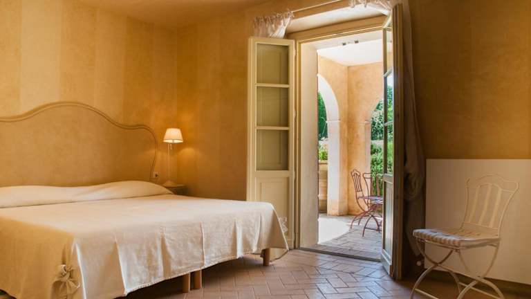 Die Zimmer im Tenuta del Fontino sind elegant im Landhausstil eingerichtet und verfügen über hochwertige Holzmöbel. Jedes Zimmer hat ein eigenes Bad mit Dusche und einige Zimmer bieten ein Himmelbett.