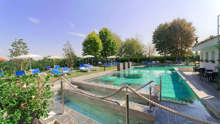 Das Hotel Terme Belsoggiorno bietet eine Vielzahl von Sport- und Freizeitaktivitäten für seine Gäste. Entspannen Sie im Außenpool oder im Innenpool des Hotels und genießen Sie die wohltuenden Eigenschaften des Thermalbads und des Whirlpools. Das Türkische Bad lädt zum Entspannen und Verwöhnen ein. Für Aktivurlauber steht ein Fahrradverleih zur Verfügung, um die Umgebung auf zwei Rädern zu erkunden. Kostenfreie Parkplätze stehen ebenfalls zur Verfügung.