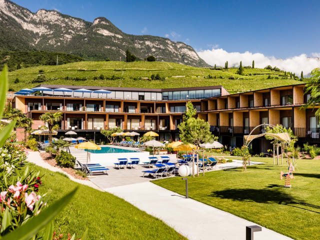 Unser 2017 neu errichtetes Haus liegt 200m vom schönen Kalterer See entfernt und bettet sich sanft in die hügeligen Weinberge. Von unseren großzügigen, lichtdurchfluteten Zimmern aus haben Sie einen wunderschönen Blick zum Kalterer See und bis zu den Gipfeln der Dolomiten oder Sie schauen in unseren grünen Garten. Frühstück, Abendessen oder Aperitif genießen Sie vom obersten Stockwerk aus mit wunderbarem Panorama in alle Himmelsrichtungen. Längenschwimmen oder Plantschen im Außenpool, aber auch drinnen. Und nach einem packenden Urlaubstag lockt die Wellnesszone mit Panoramasauna, Infrarotkabine, Dampfbad, Hallenbad und – ja, See(len)ruhe natürlich. Wanderer, Radfahrer, Familien, Pärchen oder Freunde - bei uns sind alle willkommen.