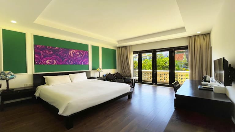 Die klimatisierten Zimmer im Thanh Binh Riverside Hoi An bieten Ihnen eine komfortable und stilvolle Unterkunft während Ihres Aufenthalts. Jedes Zimmer verfügt über einen Balkon mit entweder einem herrlichen Garten- oder Flussblick, der zum Entspannen und Genießen einlädt. Die Zimmer sind mit Holzböden und einem LCD-TV mit Kabel-/Sat-Anschluss ausgestattet. Im eigenen Bad finden Sie kostenfreie Pflegeprodukte für Ihren Komfort vor.