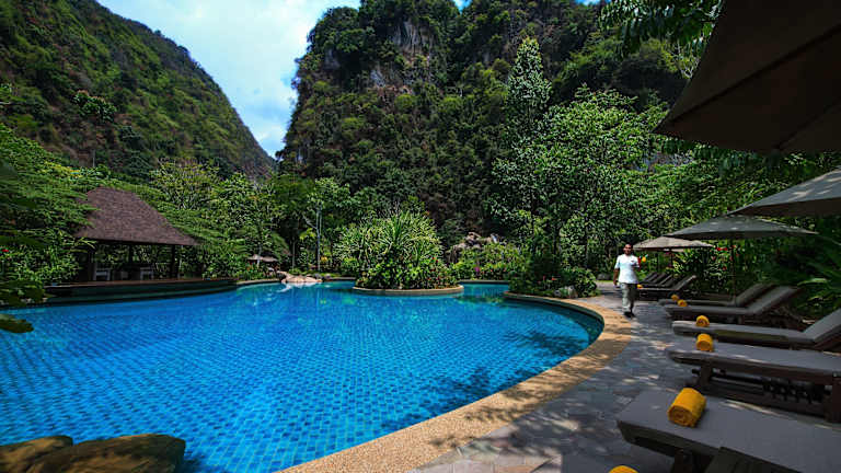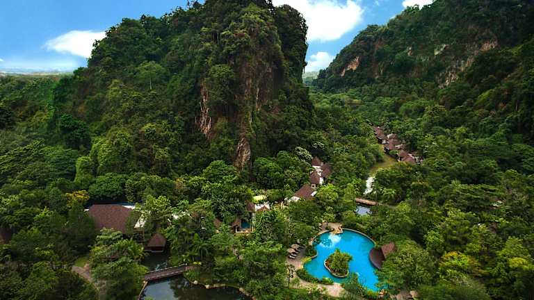 Das Eco-Hotel befindet sich etwa 8 km vom Stadtzentrum von Ipoh entfernt und bietet eine ruhige Umgebung, ideal für Erholungsuchende. In der Nähe befinden sich ein Golfplatz und der Bahnhof, was die Erreichbarkeit erleichtert. Die Unterkunft liegt vor einer eindrucksvollen Kulisse aus Kalksteinhügeln und ist von Thermalquellen umgeben.