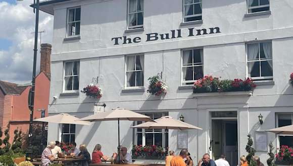 Das Hotel The Bull ist ein historisches Gasthaus, das sich im Zentrum von Woodbridge befindet. Es blickt auf den Markt und die beeindruckende elizabethanische Shire Hall sowie die schöne St. Mary's Church. Das Gebäude wurde im Laufe der Jahre erweitert und steht an der Stelle eines älteren Wirtshauses mit demselben Namen. Es stammt aus der Zeit, als es als Posthaus für die Pferdepost von London nach Great Yarmouth diente. Im Bereich der Bar sind Teile des ursprünglichen Fachwerks zu sehen, das möglicherweise aus dem 15. Jahrhundert stammt, ähnlich wie mehrere andere Gebäude am Marktplatz.