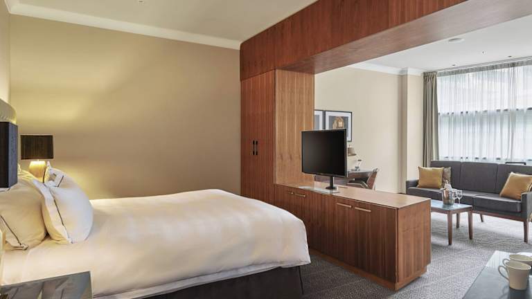 Das The Glasshouse, Autograph Collection ist ein modernes und luxuriöses Boutique-Hotel im Herzen von Edinburgh. Hinter der historischen Fassade der Lady Glenorchy Church erwartet Sie ein einzigartiges Hotelkonzept mit einem atemberaubenden 8.000 m² großen Dachgarten und Blick über Calton Hill. Die Zimmer sind stilvoll eingerichtet und verfügen über raumhohe Fenster, die entweder einen Blick auf die Dachterrasse oder das Stadtzentrum von Edinburgh bieten. Genießen Sie das Frühstück in der The Brasserie mit Panoramablick und lassen Sie den Abend in der Snug Lounge oder im Rooftop Garden mit einer Auswahl an Getränken und regionalen Speisen ausklingen. Die zentrale Lage ermöglicht es Ihnen, Edinburghs Sehenswürdigkeiten wie das Edinburgh Castle, die Princes Street und die Royal Mile bequem zu Fuß zu erkunden.