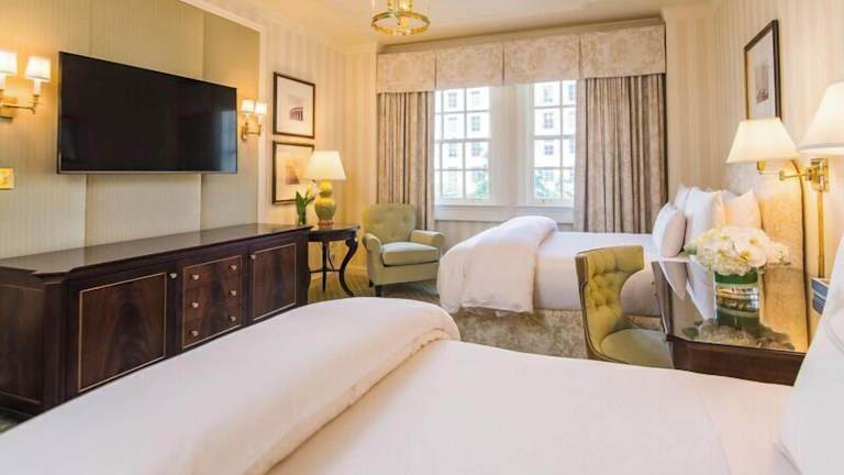 Das Hotel The Hay - Adams in Washington DC ist ein historisches Hotel mit Blick auf das Weiße Haus. Es bietet exzellente Gourmet-Speisemöglichkeiten, kostenfreies WLAN und komfortable Zimmer mit hochwertiger Ausstattung. Die zentrale Lage ermöglicht einen einfachen Zugang zu den wichtigsten Sehenswürdigkeiten der Stadt.