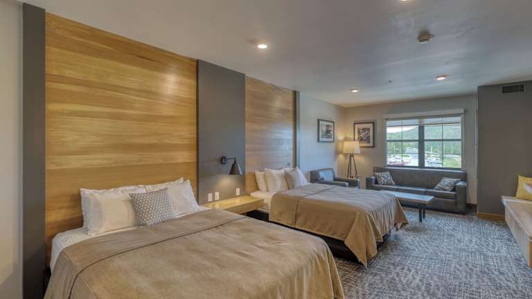 Die Zimmer im The Lodge at Deadwood sind komfortabel und stilvoll eingerichtet. Jedes Zimmer verfügt über Annehmlichkeiten wie einen Flachbild-TV, eine iPod-Dockingstation und einen Kühlschrank. Die Zimmer sind in warmen Brauntönen gehalten und bieten eine gemütliche Atmosphäre für eine erholsame Nacht.