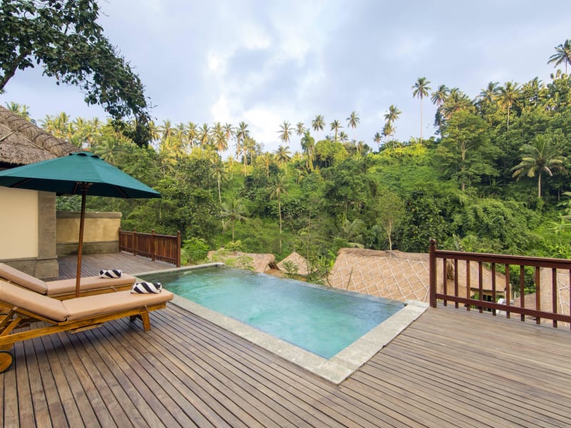 Das Hotel The Lokha Ubud verfügt über einen Außenpoolbereich mit Liegen, einen Innenpool, einen Whirlpool und eine Sauna. Gäste können auch das Fitnessstudio nutzen oder im Wellnessbereich Massagen und Ayurveda-Anwendungen genießen.