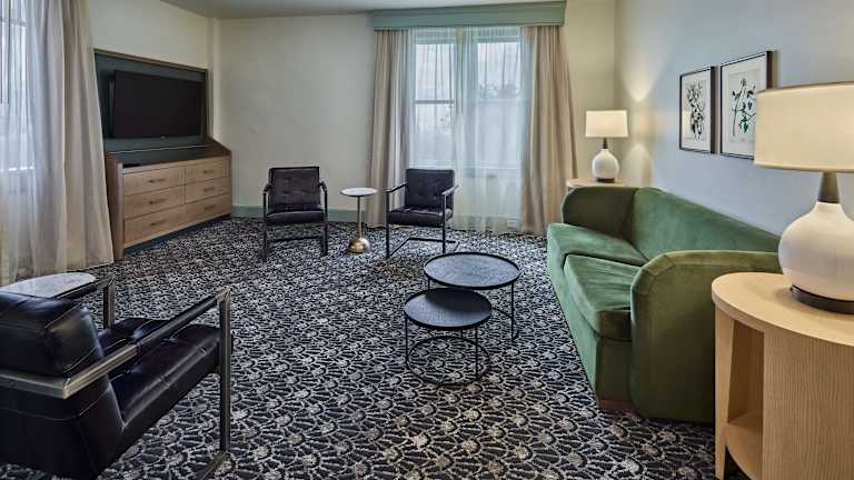 Die 143 Zimmer des Partridge Inn Augusta bieten einen komfortablen Aufenthalt mit Annehmlichkeiten wie Flachbild-Kabel-TV, iPod-Dockingstation und Kaffeezubereitungsmöglichkeiten. Einige der Suiten verfügen über einen Balkon und eine Küche. Das Hotel bietet auch rollstuhlgerechte Zimmer und einen Zimmerservice.