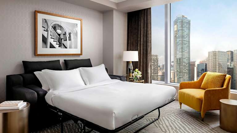 Die Zimmer im The Ritz-Carlton, Toronto variierten von Doppelzimmern mit Stadtblick bis hin zu Suiten, die zusätzliche Annehmlichkeiten bieten. Alle Zimmer verfügen über WLAN, einen 42-Zoll-LCD-Flachbild-HD-TV, eine individuell regelbare Klimaanlage sowie tiefe Badewannen und deckenhohe Fenster. In den Zimmern finden sich zudem Kühlschrank und Kaffee-/Teezubereiter. Die Zimmer sind elegant eingerichtet und bieten Komfort für die Gäste.