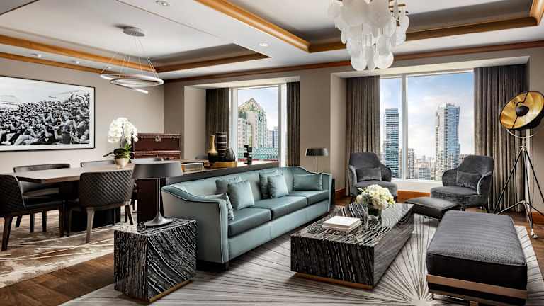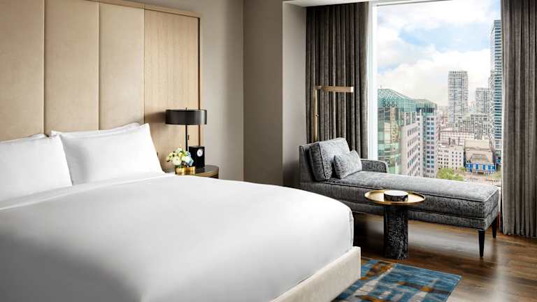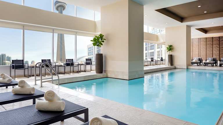 Das The Ritz-Carlton, Toronto befindet sich zentral in der Innenstadt und bietet einen Blick auf den Ontariosee sowie die Skyline von Toronto. In unmittelbarer Nähe liegen Sehenswürdigkeiten wie der CN Tower, das Ripley's Aquarium, die Hockey Hall of Fame, das Rogers Centre, die Scotiabank Arena und das Princess of Wales Theatre. Der Flughafen Toronto Pearson International Airport ist etwa 20 km entfernt, während das Stadtzentrum in ca. 1 km erreichbar ist.