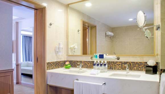 Die Zimmer sind mit Teppichböden ausgelegt und bieten Komfort durch eine Klimaanlage, einen Safe, eine Minibar, ein Telefon sowie ein TV-Gerät mit Satelliten-/Kabelempfang. Die Badezimmer sind mit einer Dusche, Haartrockner, Bademänteln und kostenlosen Pflegeprodukten ausgestattet. Viele Zimmer verfügen über einen Balkon oder eine Terrasse. Rollstuhlgerechte Zimmer sind ebenfalls verfügbar.