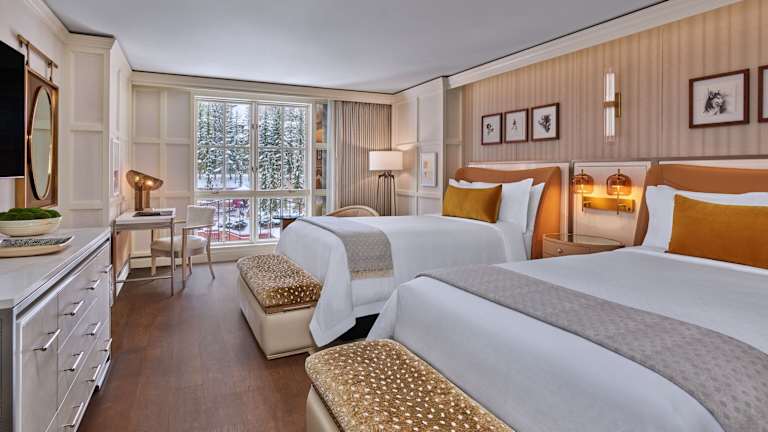 Die Zimmer im St. Regis Aspen Resort sind stilvoll und komfortabel eingerichtet. Sie sind in modernen Braun- und Rottönen gehalten und verfügen über Annehmlichkeiten wie Kabel-TV, Klimaanlage und ein eigenes Badezimmer. Bademäntel und kostenfreie Pflegeprodukte stehen ebenfalls zur Verfügung.