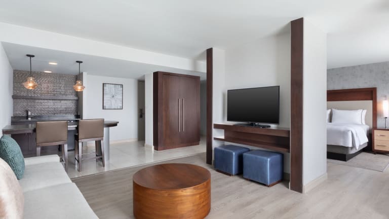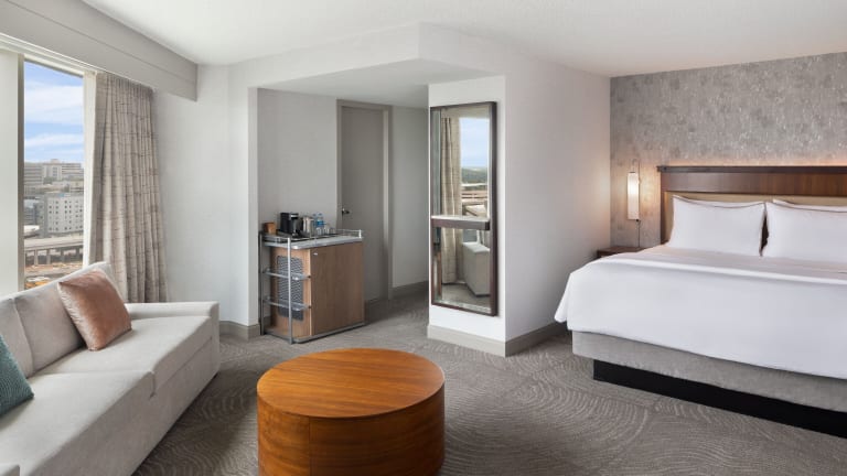 Die 372 Zimmer des Hotels sind komfortabel und stilvoll eingerichtet. Jedes Zimmer verfügt über Annehmlichkeiten wie einen 32-Zoll-Flachbild-TV, einen Kühlschrank und einen Schreibtisch mit einem ergonomischen Stuhl. Eine Kaffeemaschine mit Starbucks-Kaffee steht ebenfalls zur Verfügung. Die Gäste können den rund um die Uhr verfügbaren Zimmerservice nutzen, um ihren Aufenthalt so angenehm wie möglich zu gestalten.