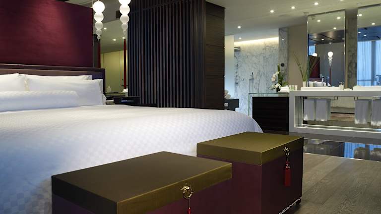 Das Hotel verfügt über 550 Zimmer auf 34 Etagen, die mit einem Aufzug erreichbar sind. Die Zimmer sind elegant eingerichtet und bieten raumhohe Fenster sowie modernen Komfort. Zur Ausstattung gehören ein interaktiver Flachbild-TV, ein Himmelbett und ein großer Arbeitsbereich. Das Badezimmer verfügt über eine Badewanne und eine separate Regendusche.