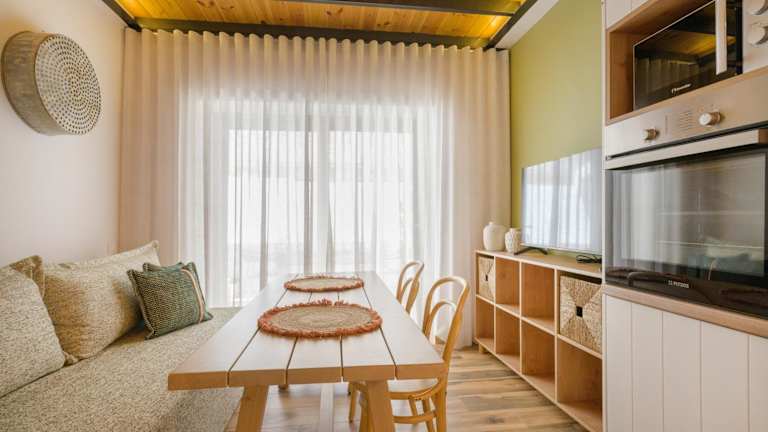 Das Ferienhaus ist klimatisiert und verfügt über 1 Schlafzimmer. Zur Ausstattung gehören ein Flachbild-TV, ein Essbereich sowie eine Küchenzeile mit Kühlschrank und Ofen. Handtücher und Bettwäsche werden bereitgestellt.