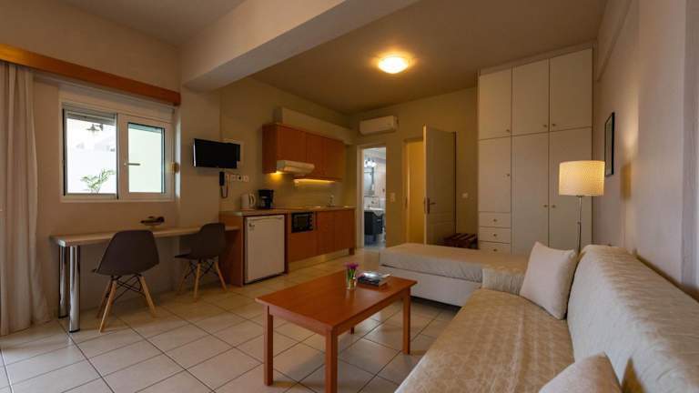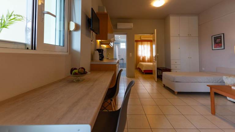 Das Theoxenia Hotel Apartments bietet klimatisierte Zimmer und Apartments, die mit einem TV, einer voll ausgestatteten Küche, orthopädischen Matratzen und einem Safe ausgestattet sind. Die Unterkünfte werden täglich gereinigt und ein Zimmerservice steht Ihnen ebenfalls zur Verfügung.