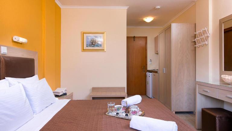 Das Hotel Thetis bietet komfortable und gut ausgestattete Unterkünfte für einen angenehmen Aufenthalt. Die Zimmer verfügen über eine Terrasse, auf der Sie die frische Luft und die schöne Aussicht genießen können. Jedes Zimmer ist mit Klimaanlage ausgestattet, um Ihnen auch an warmen Tagen einen angenehmen Aufenthalt zu ermöglichen. Ein Flachbild-TV sorgt für Unterhaltung, während ein Kühlschrank, ein Kochfeld und ein Wasserkocher in Ihrem Zimmer vorhanden sind, um Ihre Bedürfnisse zu erfüllen.