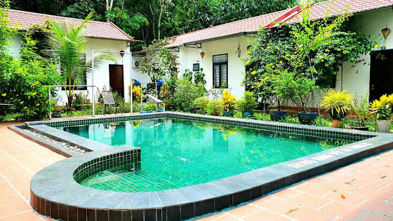 Das Hotel Thien Duong Xanh in Bình Chuẩn ist der perfekte Ort für einen entspannten Aufenthalt inmitten einer malerischen Umgebung. Mit seinem Außenpool, dem schönen Garten und dem freundlichen Personal bietet das Hotel alles, was Sie für einen angenehmen Urlaub benötigen. Genießen Sie den Komfort der klimatisierten Zimmer, die mit modernen Annehmlichkeiten ausgestattet sind, und entspannen Sie auf der Terrasse mit Blick auf den Pool. Die Umgebung bietet zudem viele Möglichkeiten zum Radfahren und Erkunden.