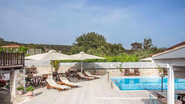 Im Hotel wird ein tägliches Frühstücksbuffet angeboten, und im hoteleigenen Restaurant können die Gäste mediterrane Küche genießen. Eine entspannte Atmosphäre zum Verweilen bietet der Loungebereich mit Kamin oder der Bereich am Pool, wo abends Getränke serviert werden.