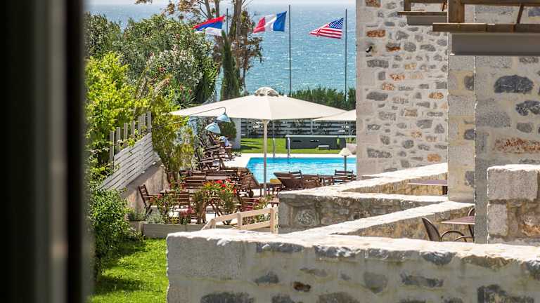 Das Thirides Beach Resort ist eine Unterkunft mit mehreren Steinbauten, die von angelegten Gärten umgeben sind. Der Komplex bietet einen Pool, ein Restaurant und zwei Bars, die eine angenehme Atmosphäre schaffen.