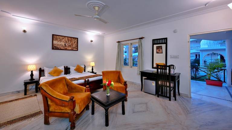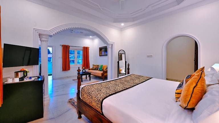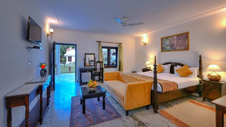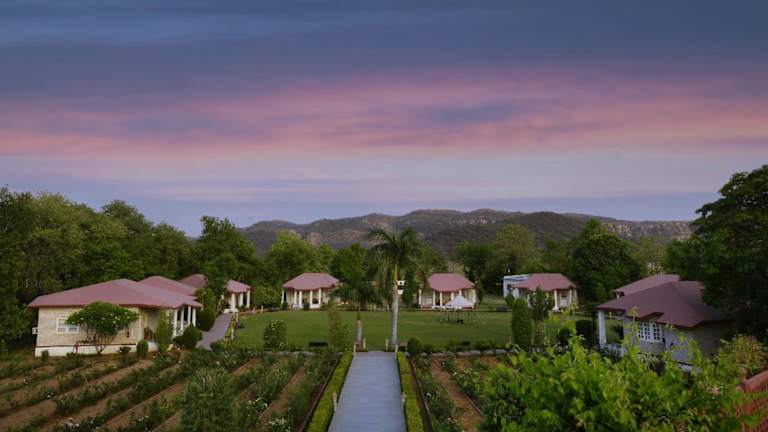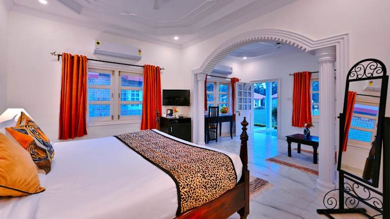 Das Tiger Den Resort liegt in Khilchipur, etwa 43 km vom Nationalen Chambal-Heiligtum entfernt. Die Umgebung bietet eine malerische Landschaft und viele Möglichkeiten für Outdoor-Aktivitäten. Der nächstgelegene internationale Flughafen befindet sich in Jaipur, etwa 140 km vom Resort entfernt.