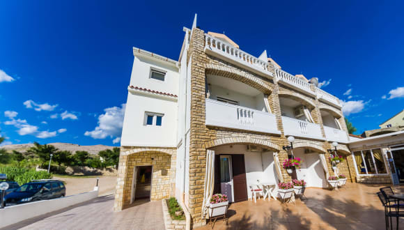 Das Hotel Tony in Pag bietet seinen Gästen einen entspannten Aufenthalt in einer freundlichen Atmosphäre. Das Hotel verfügt über 20 Zimmer und ein mehrsprachiges Personal, das den Gästen gerne zur Seite steht. Zur Ausstattung gehören ein Restaurant, ein TV-Raum und ein Transferservice. WLAN ist in den öffentlichen Bereichen verfügbar und ein Garten lädt zum Entspannen im Freien ein. Das Hotel bietet Parkmöglichkeiten gegen Gebühr. Die Zimmer sind komfortabel eingerichtet und verfügen über Klimaanlage, Heizung, TV, Balkon oder Terrasse und WLAN. Einige Zimmer bieten einen herrlichen Meerblick. Das Hotel Tony bietet auch Sport- und Freizeitmöglichkeiten wie Tennis, Volleyball, Handball und Basketball.