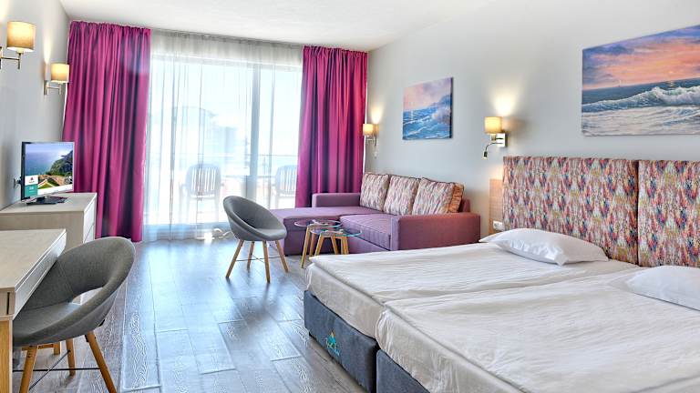 Das Topola Skies Resort & Aquapark befindet sich zwischen Kawarna und Baltschik an der nördlichen Schwarzmeerküste. Die Anlage bietet einen kostenlosen Shuttlebus zum nächsten Strand und liegt in der Nähe des Thracian Cliffs Golfplatzes. In der Umgebung können Sie das Kap Kaliakra, den rumänischen Garten, das Schloss von Königin Maria in Balchik und die Muschelfarm besichtigen. Der Ferienort Albena und der Flughafen Varna sind ebenfalls leicht zu erreichen.