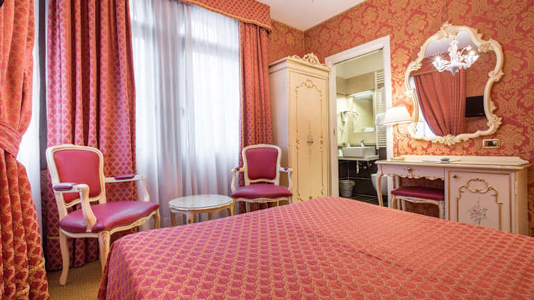Das Hotel Torino bietet eine Auswahl an Zimmern im Barock-Stil, die einen gemütlichen und komfortablen Rückzugsort bieten. Die meisten Zimmer befinden sich im Hauptgebäude und sind mit einem Aufzug erreichbar. Weitere Zimmer und Apartments sind in nahegelegenen Gebäuden verfügbar. Alle Zimmer verfügen über ein eigenes Bad und sind mit modernen Annehmlichkeiten wie kostenlosem WLAN, Sat-TV und Klimaanlage ausgestattet.