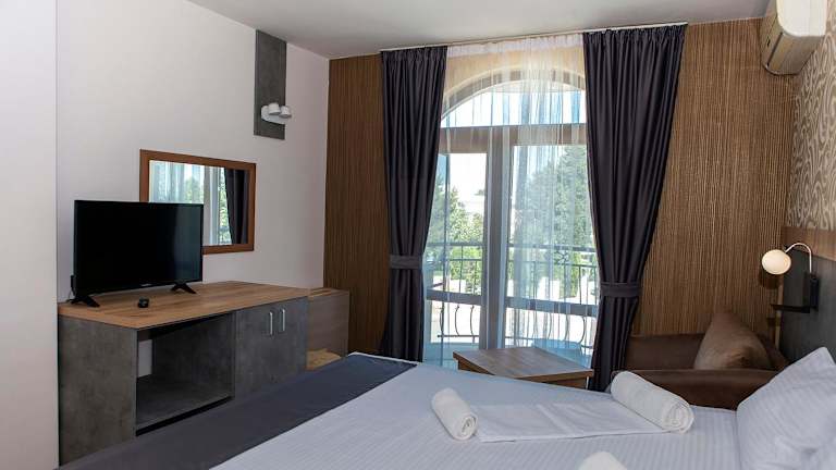 Das Hotel bietet verschiedene Dienstleistungen und Einrichtungen für seine Gäste. An der 24-Stunden-Rezeption können Sie Fahrräder und Autos mieten, um die Umgebung zu erkunden. Es gibt auch einen kostenlosen Safe für Wertsachen. Bügel- und Wäscheservice werden gegen Aufpreis angeboten. Das Hotel bietet auch eine Ladestation für Elektrofahrzeuge gegen eine Gebühr von BGN 0,79 pro Kilowattstunde.