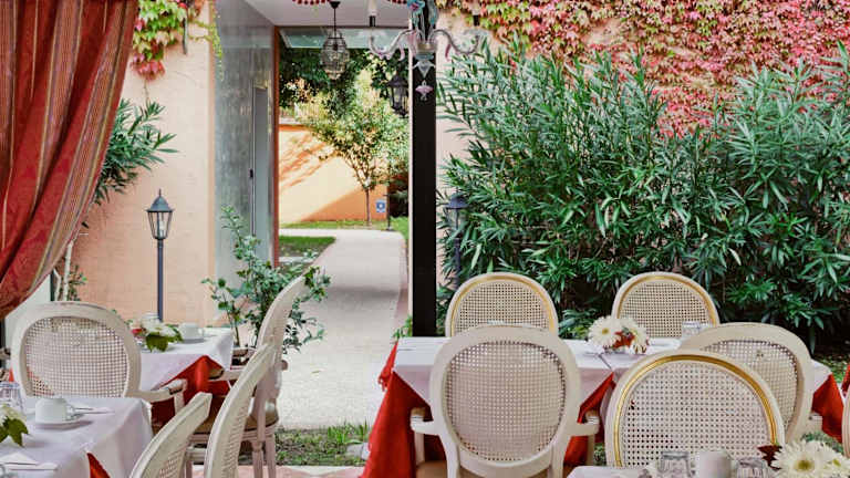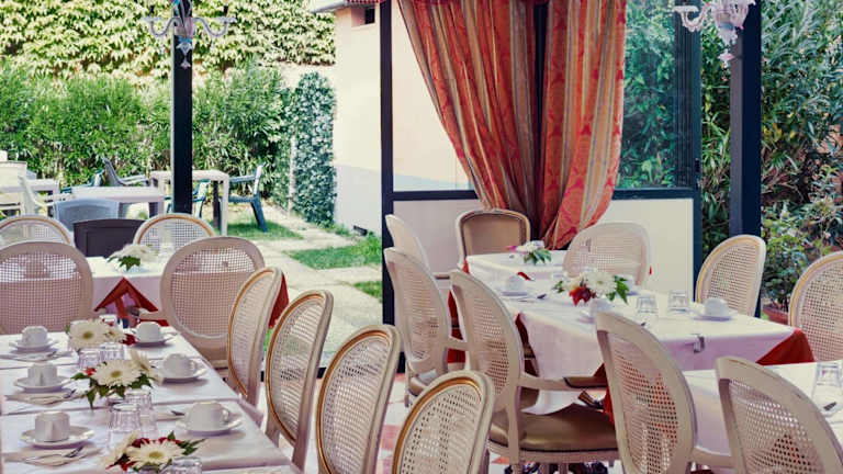 Das Hotel Tre Archi bietet verschiedene Verpflegungsmöglichkeiten. Sie können entweder ohne Verpflegung buchen oder das Frühstück hinzufügen. Das Frühstück wird im Sommer im grünen Garten serviert. Das Hotel verfügt auch über eine kleine Bar, in der Sie sich entspannen und erfrischen können.